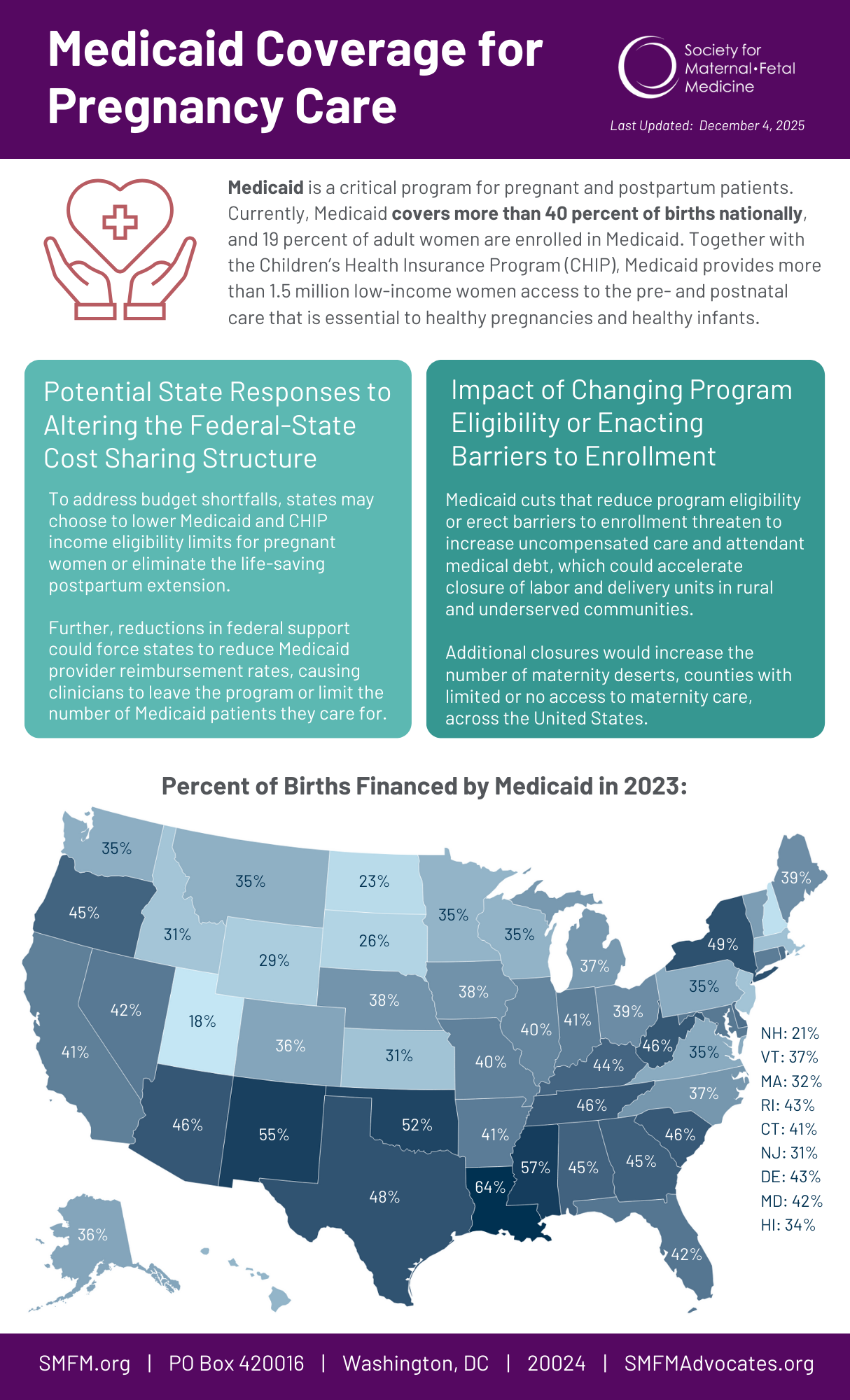 Even though Congress has promised to protect pregnancy-related care, SMFM has significant concerns about how the bill’s Medicaid provisions will impact pregnant patients and providers of obstetric care.